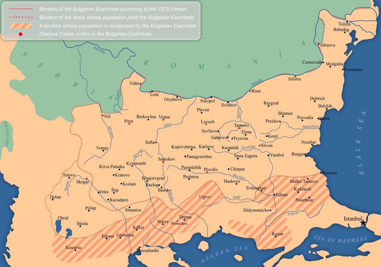 The Bulgarian Exarchate, established by imperial firman in 1870, was an autonomous Orthodox ecclesiastical institution within the Ottoman Empire. Its creation marked a shift in the religious and cultural life of the Slavic-speaking Orthodox population in Macedonia and Thrace. Beyond its spiritual role, the Exarchate functioned as a key vehicle for education, language use, and communal self-identification, operating in a space where ecclesiastical allegiance was closely intertwined with the emerging Bulgarian national project.